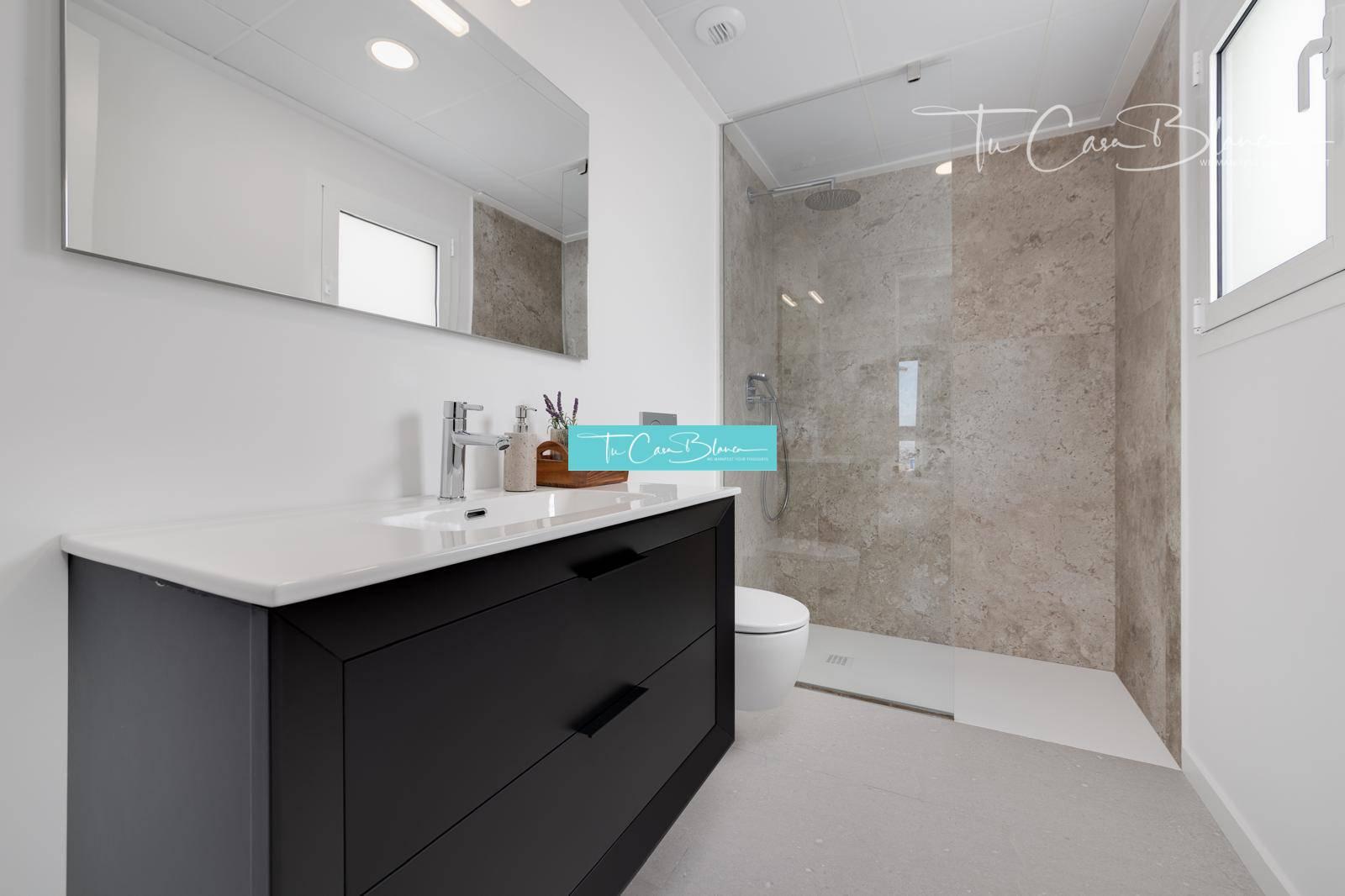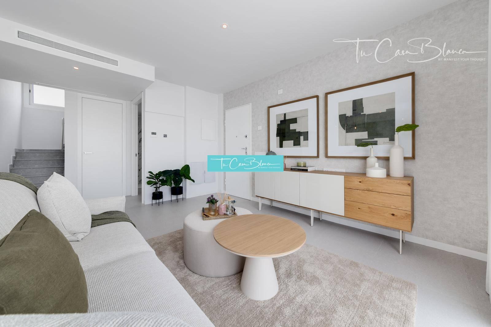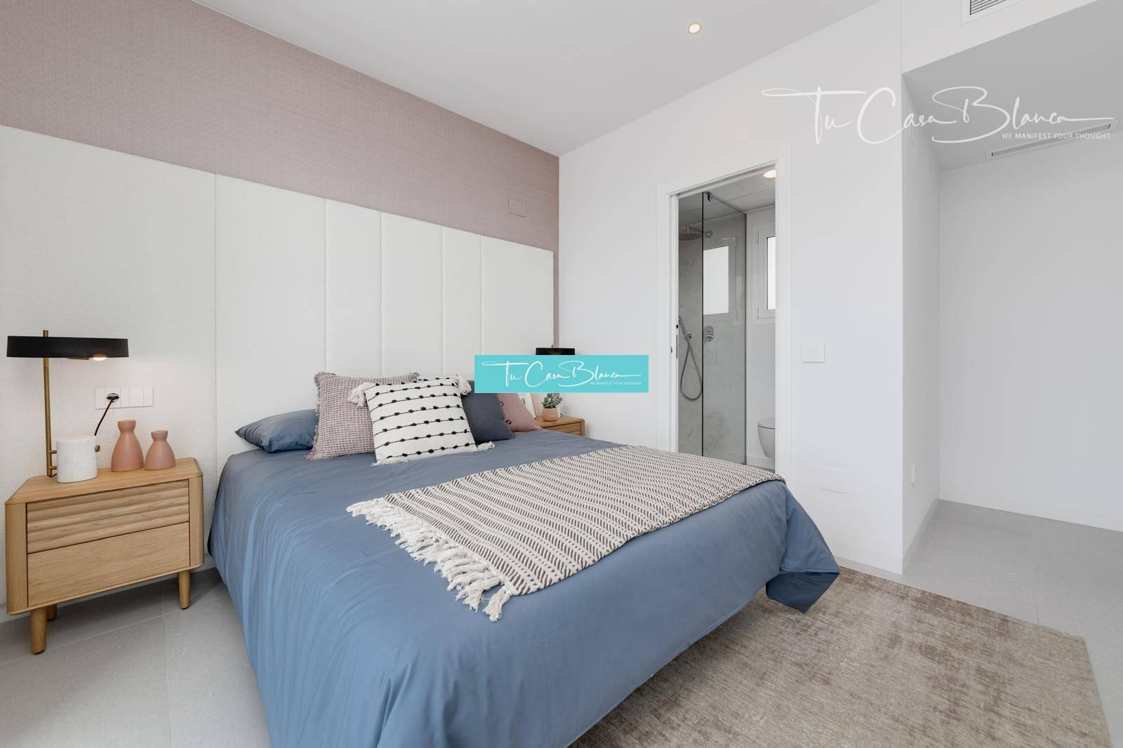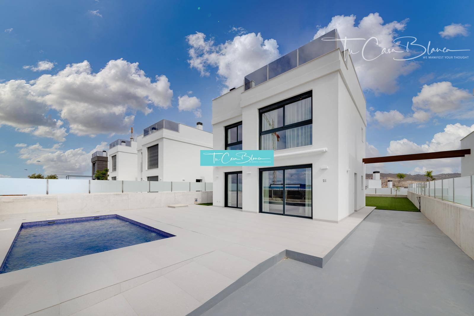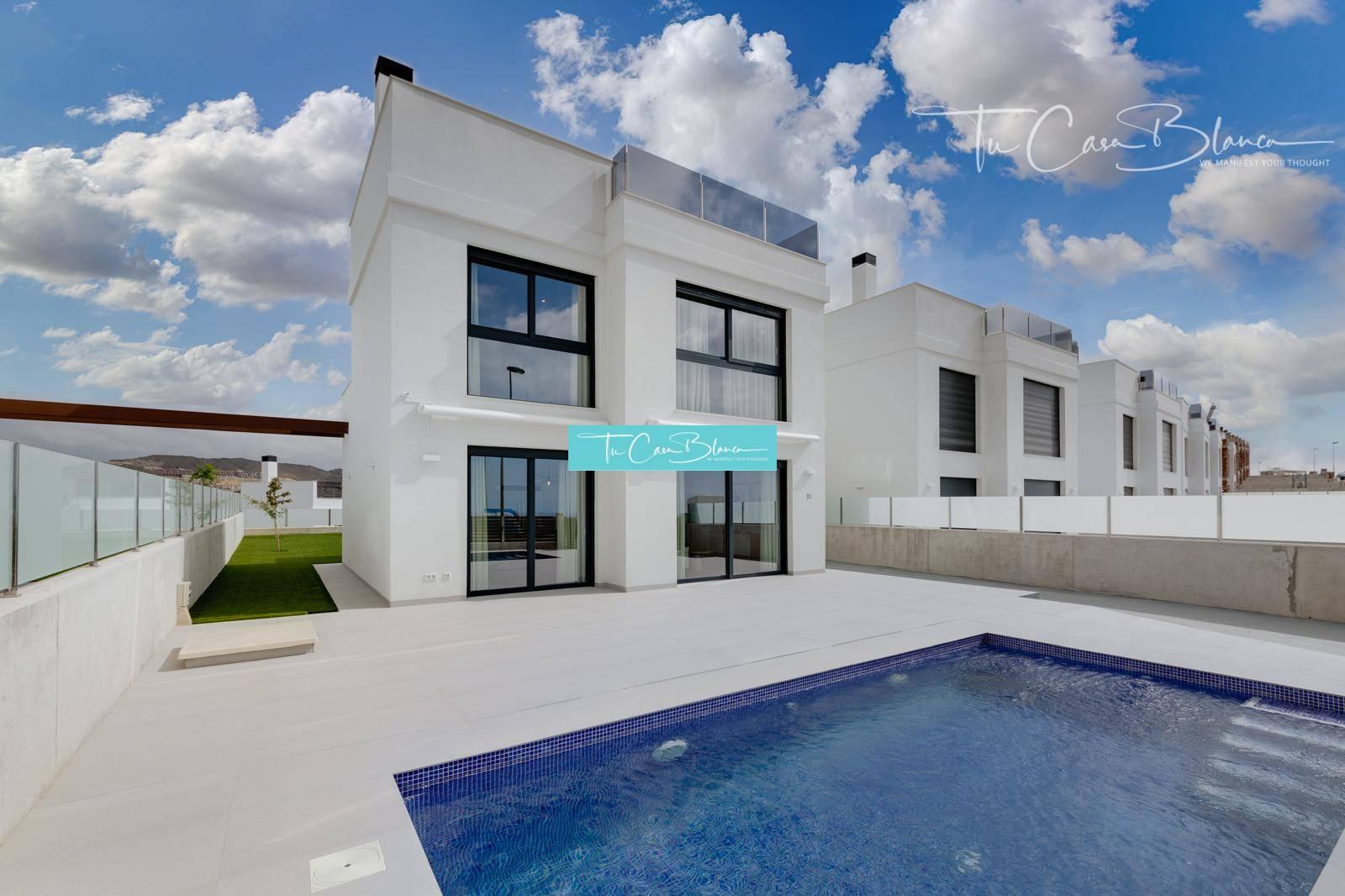 Vila postavená na pozemkoch od 647 m² ponúka zastavanú plochu 243 m² (úžitková plocha 118 m²), pozostáva z 3 spální, 3 kúpeľní, obývacej izby spojené s jedálňou a kuchyňou (vrátane elektrospotrebičov), priestranné terasy s vlastným bazénom. Panoramatické výhľady na more v Campello a San Juan.